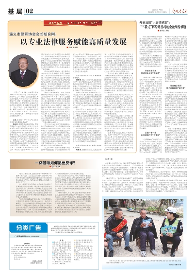 服务大局展现新作为。遵义律师充分发挥专业优势,积极投身重大战略部署,以高效专业的法律服务彰显时代担当。在助力营商环境优化方面,遵义律协与市司法局、市工商联联合成立“法治体检”活动领导小组,深入民营企业排隐患、解难题。贵州贵遵律师事务所为企业开出10个“法治处方”,其案例入选第二届中国律师公益典型案例,成为律师服务经济社会发展的典范。
