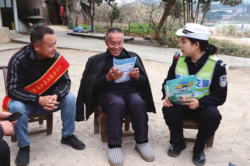 12月18日,松桃自治县公安局交警大队联合大坪场镇政府,走进大坪场镇甘泉村开展冬季交通安全宣传活动,将交通安全知识送到群众家门口。