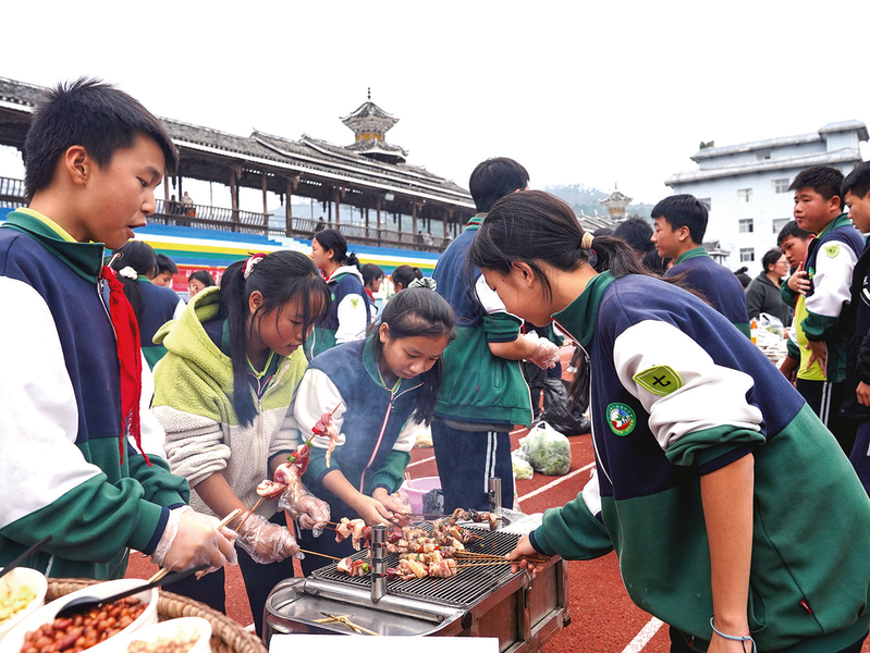 近日,从江县第二民族中学举办校园美食节。学生们自主组队,制作腌鱼、五彩糯米饭等地方特色美食。活动融合烹饪评比、美食分享与家校互动,旨在弘扬传统饮食文化,让学生在劳动实践中体验价值,全面提升综合素质。