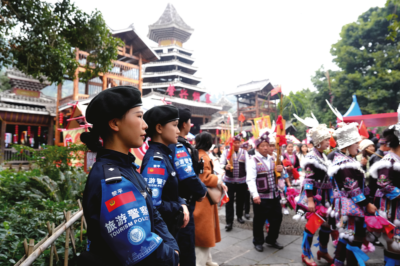12月20日,以“欢乐侗乡幸福年”为主题的侗年巡游活动在黎平县肇兴镇启幕。黎平公安提前谋划,在各路口各要道派专人守护,派工作人员为巡游队伍开道,在表演现场维持秩序,保障观众和游客生命财产安全。