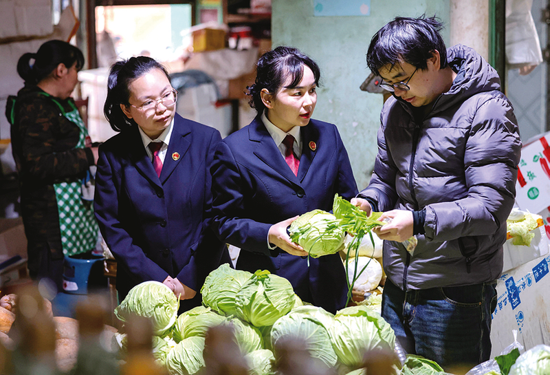 玉屏检察院干警开展农贸市场经营“问题蔬菜”案件“回头看”。 ■ 通讯员 杨涛