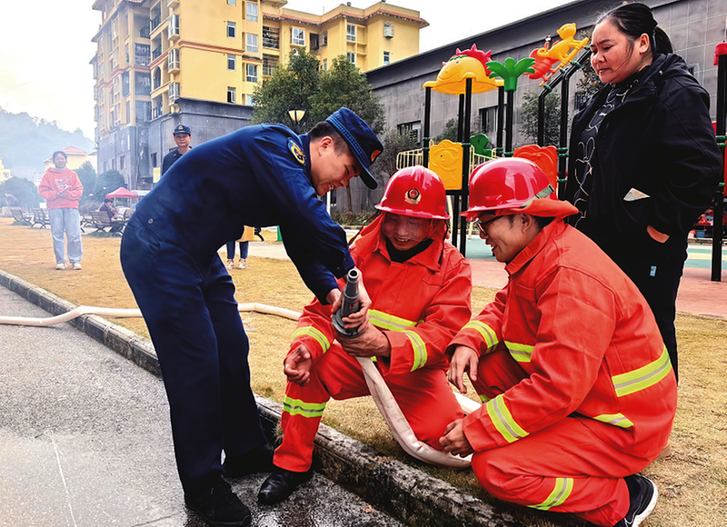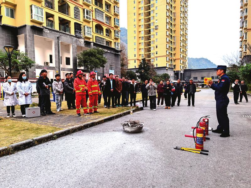 近日,册亨县消防救援大队联合百口乡开展高层建筑消防应急疏散演练。演练结束后,消防员现场讲解消防设施使用方式并发放宣传册,切实强化易地扶贫搬迁安置小区群众的消防安全意识,提升应急处置与自救能力。