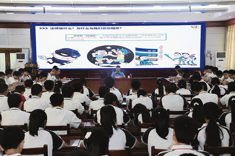 “本周德育安全小结,我们重点学习校园欺凌的认定标准和应对方法,请同学们结合案例认真思考……”每周一的德育安全周小结时间,班主任都会结合近期校园情况和典型案例,对学生进行常态化法治教育,内容涵盖校园秩序、交通安全、网络文明、自我保护等多个方面,让法治教育融入日常、抓在经常。