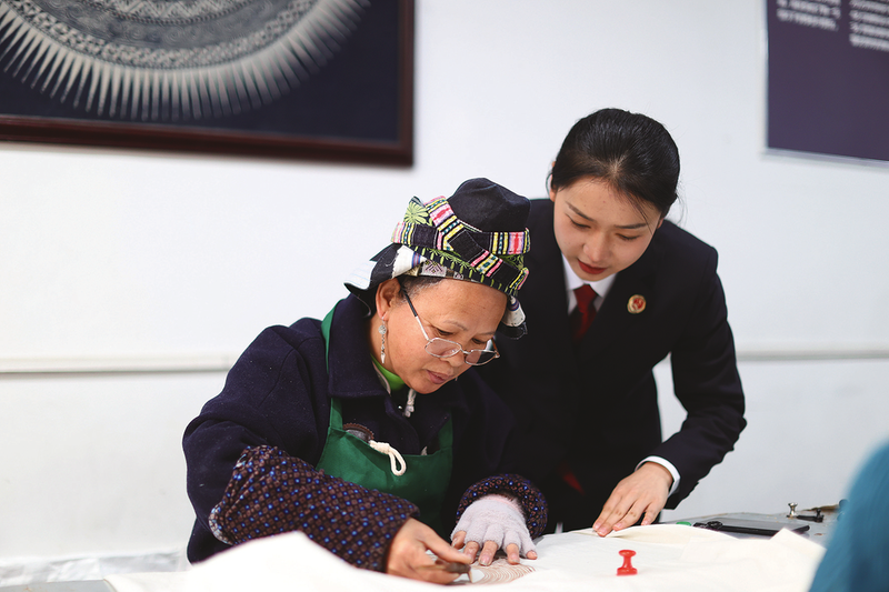 12月25日,丹寨县人民检察院检察官走进蜡染非遗工坊,普及知识产权保护、妇女劳动权益保障等法律知识,并解答非遗工坊“如何强化原创设计保护”等问题,为护航非遗产业发展注入检察力量。