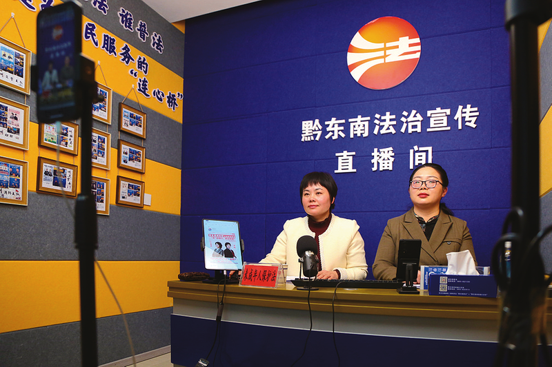 法治副校长团队成员到黔东南法治宣传直播间向网民普法。