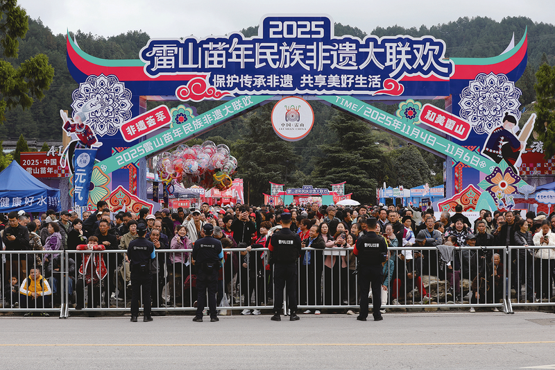 雷山县公安局民警辅警在2025年雷山苗年巡演活动现场维护秩序。通讯员 杨正道 摄