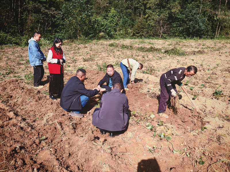 调研红芯红薯采收情况。 ■ 记者 张光平