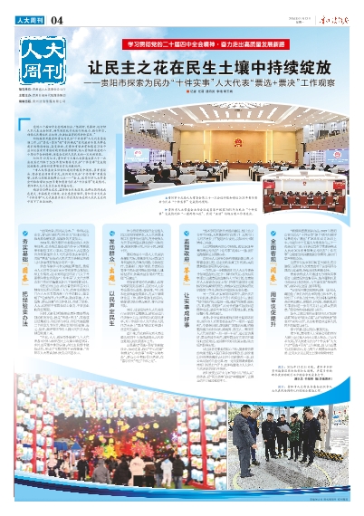 贵阳市县乡三级人大代表结合履职实际,聚焦事关人民群众切身利益的热点难点问题,为教育医疗、交通出行、城乡建设、养老托幼等多个民生领域提出项目建议,建好经济社会高质量发展的“民生账”“民意库”。