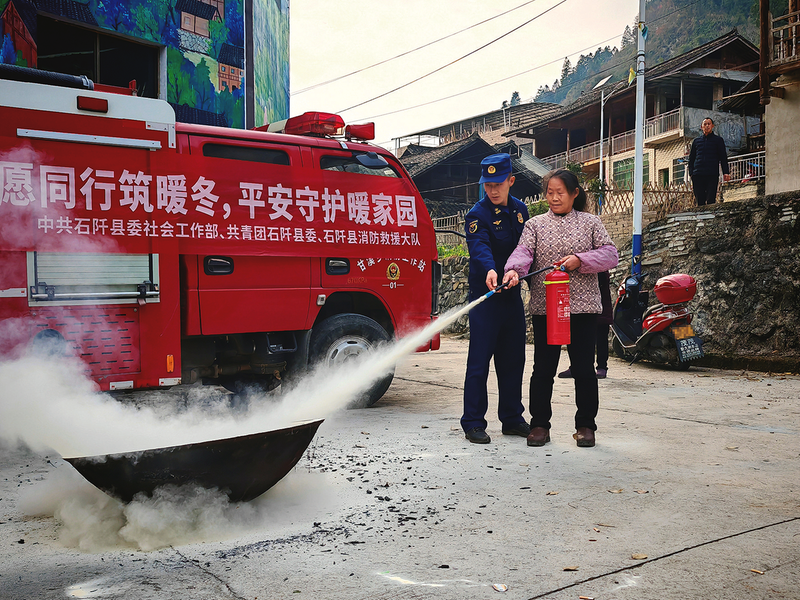 日前,铜仁市石阡县消防救援大队联合石阡县委社会工作部、团县委走进传统村落开展“平安顺心”冬季消防安全宣传活动,把消防安全知识送到村民家门口。消防宣传员与村民围坐一堂,并紧密结合农村实际,细致讲解了如何正确报火警、扑救初期火灾等基础消防常识,还演示了灭火器的正确操作要领。同时,上门面对面为村民排查家庭火灾隐患,发放消防宣传资料,叮嘱日常防火注意事项,切实将消防安全提醒送达每一户。