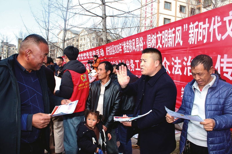 近日,威宁自治县多部门联合到五里岗街道朝阳新城社区,为外出务工返乡人员开展岁末年初防范非法金融普法宣传进社区活动。活动通过悬挂宣传横幅、发放宣传资料、现场答疑等多种方式开展。现场为群众发放宣传资料350余份、解答相关问题30余个。