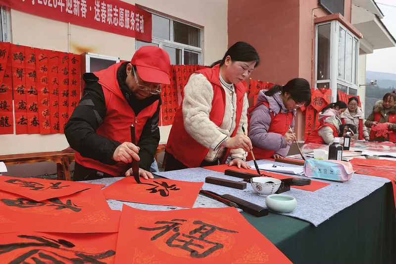 春节临近,年味渐浓。连日来,黔东南州榕江县古州镇车民小学组织该校书法班、艺术剪纸班的老师和学生到车民街道特和社区开展志愿服务,为易地移民搬迁群众写春联、送剪纸、送福字。
