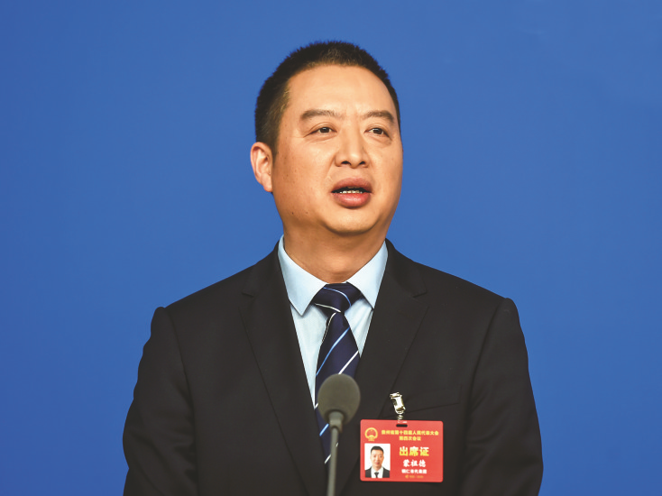 省人大代表、贵茶集团董事长兼总经理蒙祖德,在首场“代表通道”上就贵州茶产业转型实践与国际化发展话题回答记者提问。