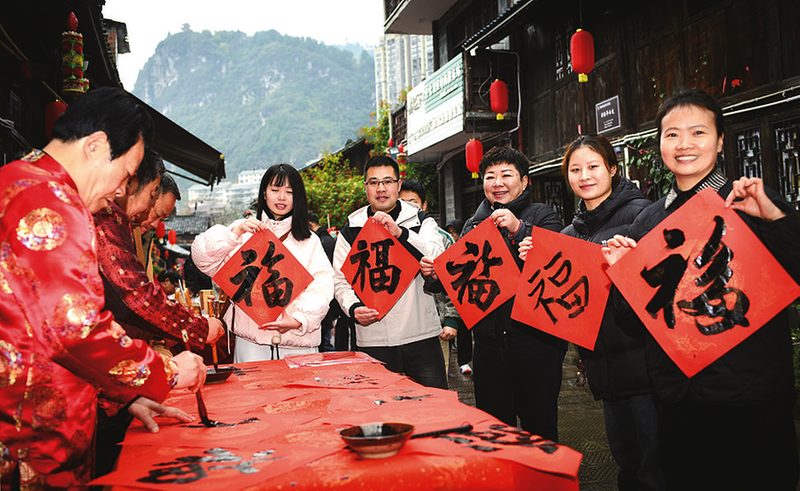 近段时间以来,铜仁市思南县书法家协会和第二小学书法社团等社会团体,纷纷组织人员走进街道、社区、乡村,积极开展“写(赠)春联、送祝福、迎新春”等“文化三下乡”专场活动。