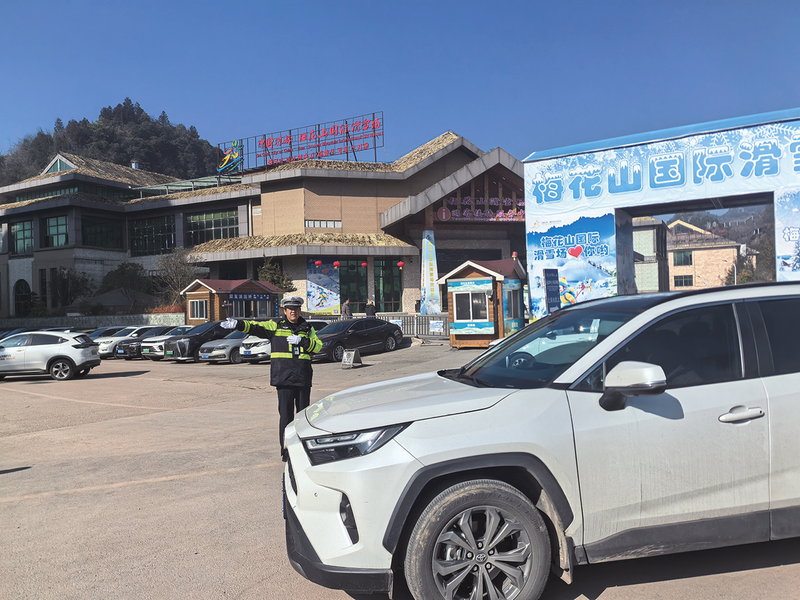 为维护梅花山滑雪场景区周边道路交通秩序,营造安全、有序的出行环境,城西中队以“点上守、线上巡、面上控”为核心,打出精准保障组合拳,每日投入不少于5名警力,并协调景区20名保安共同参与交通疏导。在景区入口、隧道口、停车区、弯道陡坡等关键点位定人定岗,强化恶劣天气应急管控,紧盯易凝冻、急弯陡坡、事故易发等路段,加强巡逻排查,通过喇叭喊话、警车带道、限速通行、间断放行、分流管控等措施,实现道路疏导无死角、安全防护全覆盖。