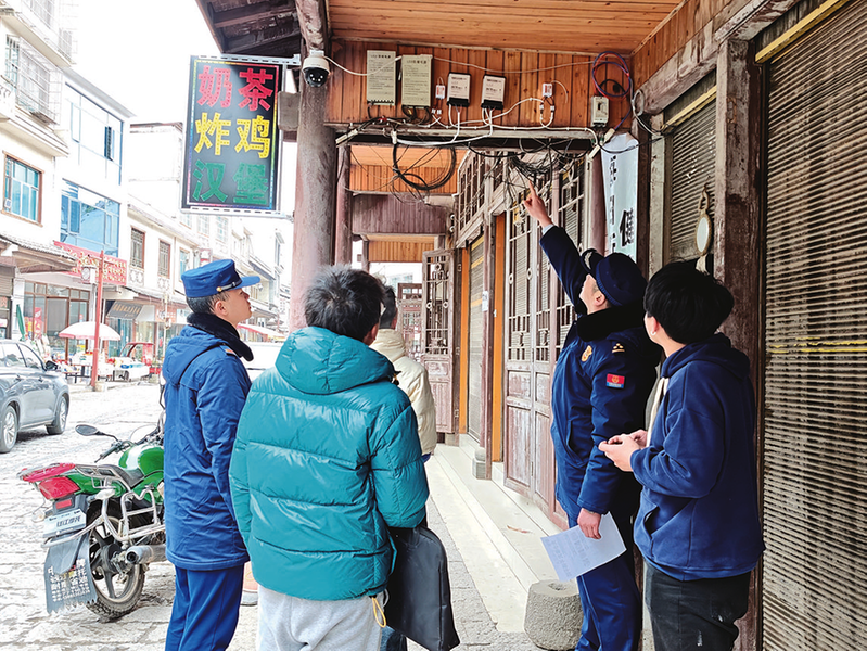 靶向聚焦重点场景,精准帮扶筑牢安全屏障。关岭自治县消防救援大队以“1+1+N”机制为抓手,针对高风险场景、重点人群分类施策,实现“精准帮扶、靶向宣传”,杜绝宣传“一刀切”。针对小型餐饮场所“用火用电集中、隐患多”特点,“火焰蓝讲师团”走街串巷上门帮扶,深入后厨开展“沉浸式”隐患排查,指导更换老化燃气软管、清理油污,手把手教员工“提拔握压”灭火器使用、灭火毯覆盖油锅火情技巧;联合商务局对50余名景区、涉旅企业负责人开展警示约谈培训,围绕“四个能力”讲解火灾应急处置,督促落实消防安全责任制,为旅游市场筑牢安全屏障。同时,联合关索街道为9个村居免费配备40余具干粉灭火器,现场培训使用方法,让安全器材“安家”、安全知识“落地”。