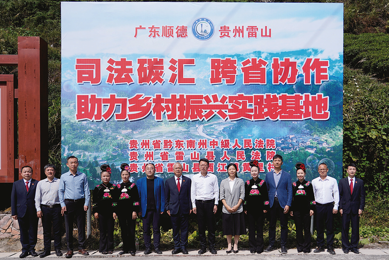 2024年,雷山法院与广东省佛山市南海区法院,签订了《司法碳汇跨省协作框架协议》,山海携手创新进取,共享“司法碳汇+生态修复”实践经验,共建多领域联动机制,以司法之力助推两地生态文明建设。促成广东企业认购10万元贵州林业碳票,诞生“全国首张跨省司法碳票”。