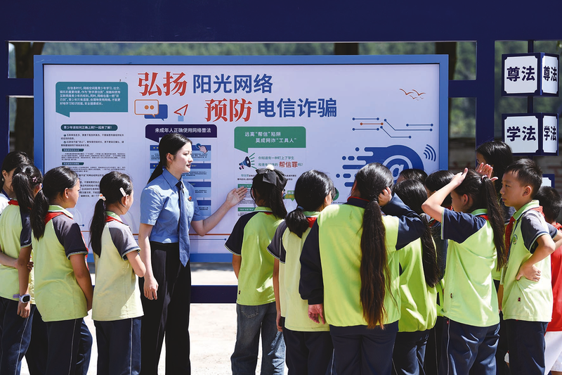 黄平县人民检察院干警在上塘镇中心小学向学生讲解预防电信网络诈骗知识。通讯员 王超 摄(影像贵州) ■ 记者 罗翔