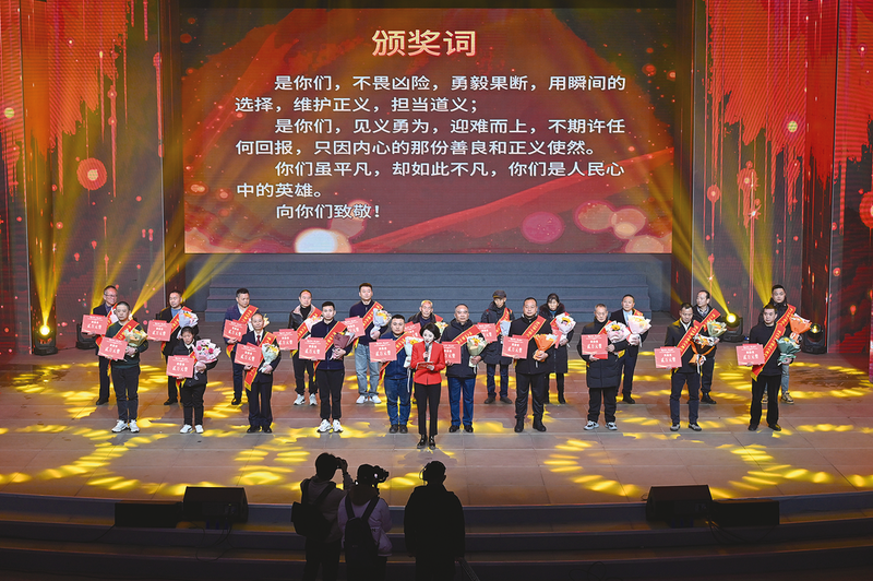 时针拨回2024年1月20日,遵义市新闻传媒中心演播大厅,舞台绚丽,灯光繁华。遵义市第七届见义勇为模范先进个人颁奖典礼隆重举行,何华军、陈稳、张显礼等10人被授予“遵义市第七届见义勇为模范”称号,杨飞、张德宇、曾启亮等21人被授予“遵义市第七届见义勇为先进个人”称号。这些凡人英雄,因奋不顾身的善举,获得载满荣光的证书和鲜花。