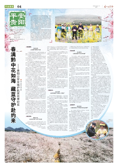 当来自五湖四海的游客循着花香奔赴这场春日之约,一个个藏蓝身影始终坚守在花海深处、道路两旁,以忠诚为盾、以服务为暖、以科技为翼——贵阳公安机关立足“全域覆盖、精准施策、服务为民”的原则,打破区县壁垒,统筹全市警力,结合各地赏花点特点、客流车流规律,科学部署警力,构建起全域覆盖、精准高效的安保体系,让平安成为这个花季最动人的底色,让每一场花季邂逅,都有平安相伴。