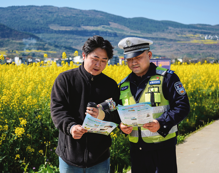 阳春三月,百花盛开,乡村赏花游持续升温。随着人流、车流的激增,道路交通安全风险也随之加大。各地交警紧跟形势,将宣传阵地延伸至花海景区、田间地头,精准护航群众踏青赏花平安路。