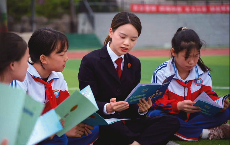 日前,安顺市西秀区人民检察院未成年人检察部干警走进西秀区启新学校,开展预防性侵害主题宣传活动,进一步提升同学们的法治意识。图为干警为学生答疑解惑。
