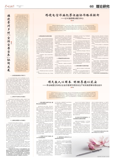 综上,茅台制酒五车间的探索表明,国有企业安全生产既是依靠严密制度与科技支撑的“硬工程”,更是需要文化滋养与价值引领的“软工程”。通过将“顺天敬人、明理厚德”价值观与“爱我茅台、为国争光”企业精神具象化为“安全小广播”及其深情叮嘱,车间成功将安全生产工作落细落小落实于每一天的生产之中。这一实践证明,当安全成为文化,规章拥有温度,责任源自认同,就能构筑起最广泛、最牢固的人民防线,对广大国有企业构建具有中国特色、体现文化自信的安全治理体系,推动高质量发展与高水平安全良性互动,具有重要的理论参考价值与实践推广意义。