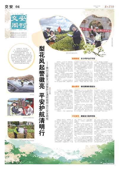 梨花风起正清明,游子寻春半出城。2026年清明假期,贵州交警以日夜坚守回应群众期盼,以专业高效守护道路畅通,以温情服务温暖万千民心。风雨无阻的身影、铿锵有力的指挥、及时暖心的相助,汇聚成假期里最安心的风景。