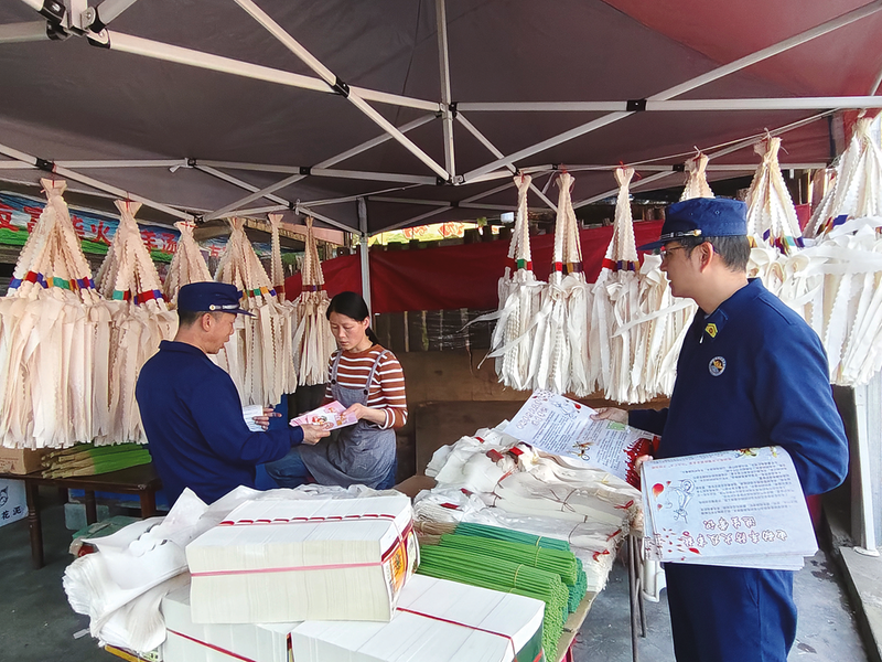 在安顺市普定县,赶集日的热闹人群中,消防宣传员支起了小摊。他们发手册、拉横幅、现场讲解,用接地气的方式告诉大家:文明祭扫,安全第一。