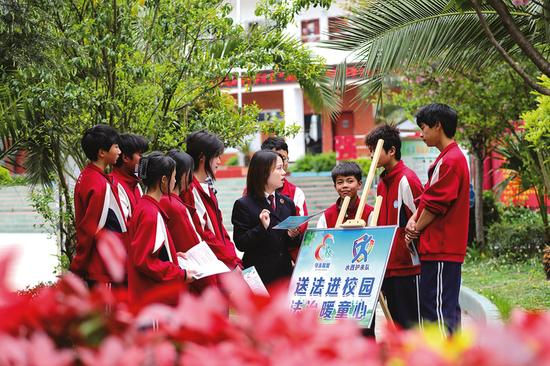 4月7日,黔西市人民检察院牵头组建的“水西护未队”携手金碧镇政府,走进金碧中学开展普法宣传活动。干警们围绕网络诈骗、个人信息泄露、网络暴力等常见风险,通过情景模拟、案例分析等方式,讲解网络陷阱的识别技巧,提醒同学们坚决抵制电信网络诈骗诱惑,进一步深化大家对法律知识和网络安全的理解。